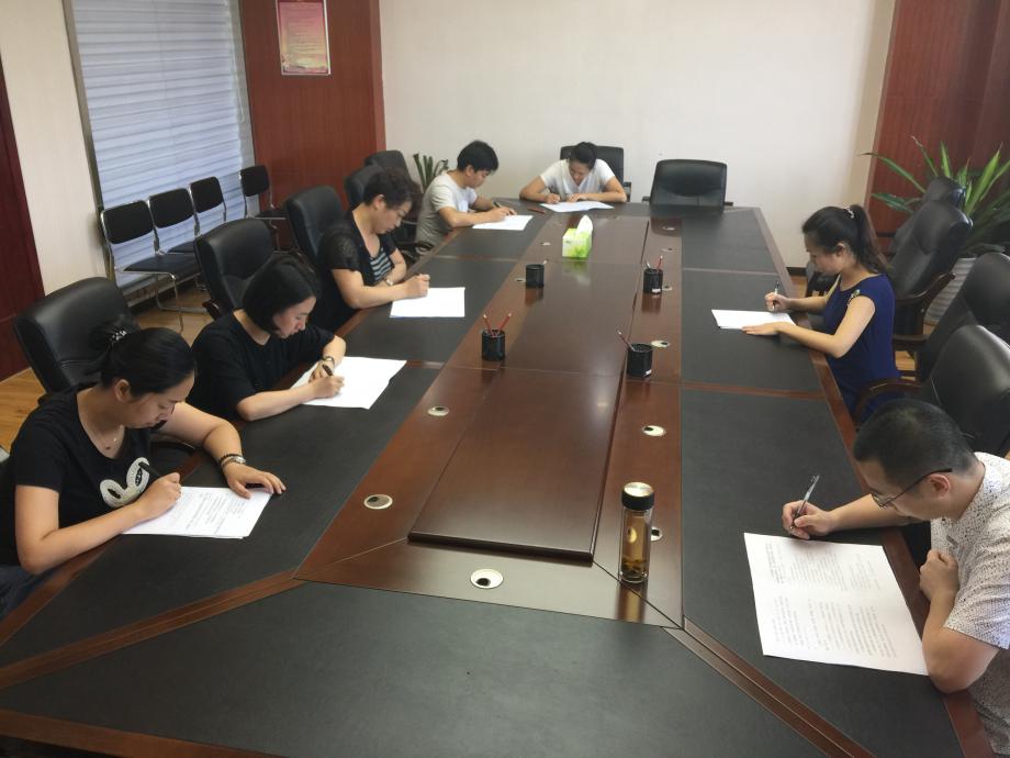 8月10日下午,市文旅投公司組織全體黨員開展了“兩學一做”學習教育知識測試活動,此次知識測試要求黨員全面學習掌握《中國共產黨章程》、《廉潔自律準則》、《紀律處分條例》、習近平總書記系列講話等內容??荚嚥扇¢]卷、集中答題的形式進行,全體黨員在規(guī)定時間內認真完成了答題。
