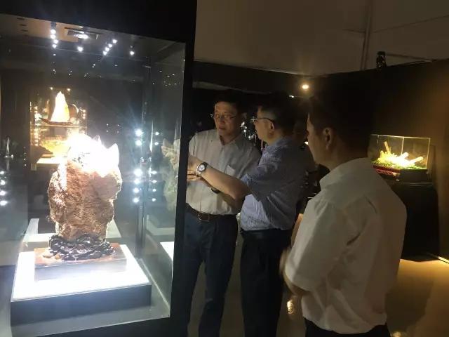 李亞隆一行先后參觀了礦博園化石精品館、礦晶攝影展、光華收藏館和礦物精品館。作為一名攝影愛好者,李亞龍在感嘆大自然鬼斧神工的同時,也不忘頻頻拿出手機拍照留念。