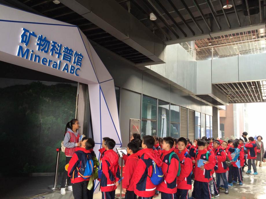 當(dāng)天早上930分,武漢路小學(xué)4年級的250名小學(xué)生在礦博園門口集結(jié)完備,手捧新匯編的地礦科普教材的孩子們難掩興奮,紅撲撲的小臉蛋上眸光閃耀,他們知道在礦博園及地質(zhì)博物館內(nèi)即將找到書本上描述的精美礦晶,神奇的地礦探索之旅就在眼前。