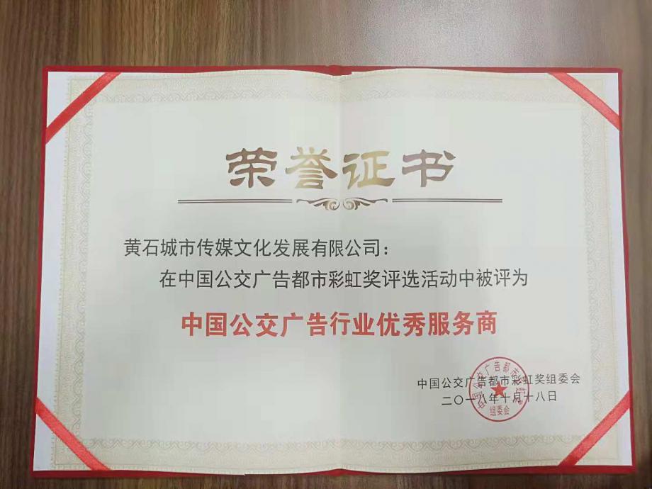 2018年10月17日,在湖南長(zhǎng)沙召開(kāi)了中國(guó)公交廣告第二屆聯(lián)誼會(huì)暨品牌競(jìng)合力峰會(huì),全國(guó)各市地公交廣告商有300多家參會(huì)。黃石城市傳媒文化發(fā)展有限公司榮獲“中國(guó)公交廣告行業(yè)優(yōu)秀服務(wù)商”稱號(hào)。此證書(shū)的取得,不僅是一種榮譽(yù),更是一種責(zé)任,城市傳媒將繼續(xù)秉承緊跟市場(chǎng)、服務(wù)市場(chǎng)的原則,進(jìn)一步提高廣告業(yè)務(wù)能力及服務(wù)水平,充分發(fā)揮優(yōu)勢(shì)作用,力爭(zhēng)成為公交廣告行業(yè)的開(kāi)拓者和創(chuàng)新者。