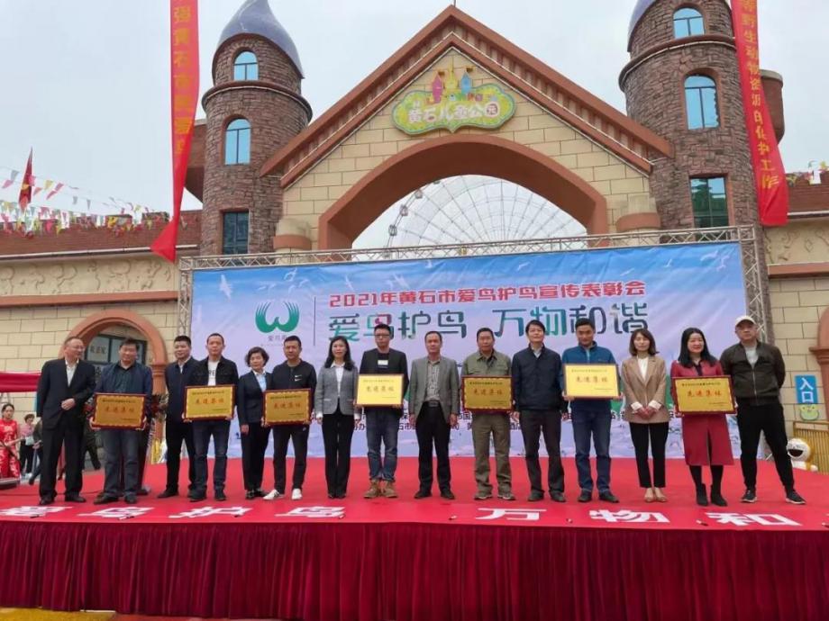 湖北省野生動植物協(xié)會副秘書長曹國斌;黃石市自規(guī)局副局長何衍明、黃又平;黃石市文旅集團董事長黃海燕;黃石兒童公園、黃石磁湖旅游公司負責人等蒞臨本次表彰會,為7個野生動物保護先進集體、10名愛鳥護鳥好市民頒獎。