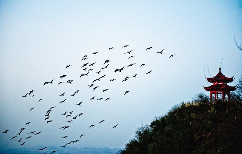 沿游步道往北行至臨江崖邊是北望亭,此處可俯視江濤奔騰東去,江北散花洲和策湖碧綠萬(wàn)頃。