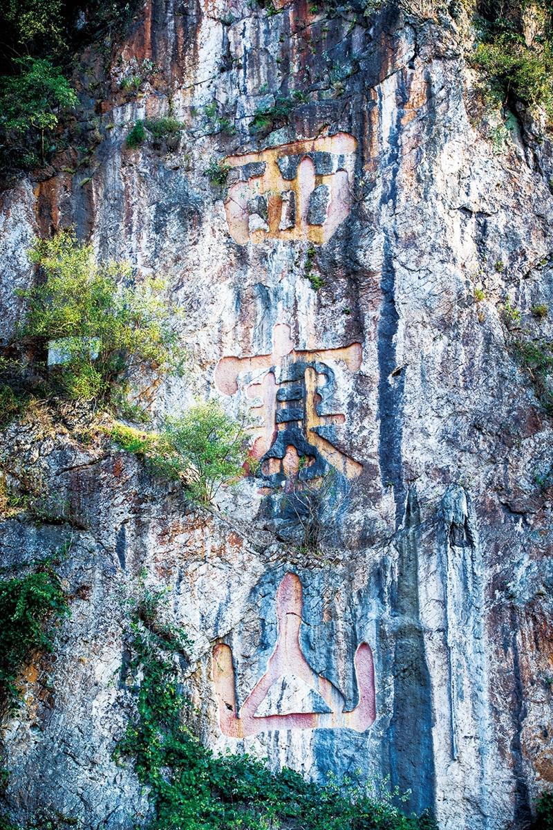 山體東北懸崖之中,有不少名家留下的石刻,如飛來船鰲魚石、 虎豹關(guān)蛟龍窟、 云林得意、 震標(biāo)仟仞以及鐘崖、 佛掌等等,年代久遠(yuǎn)。